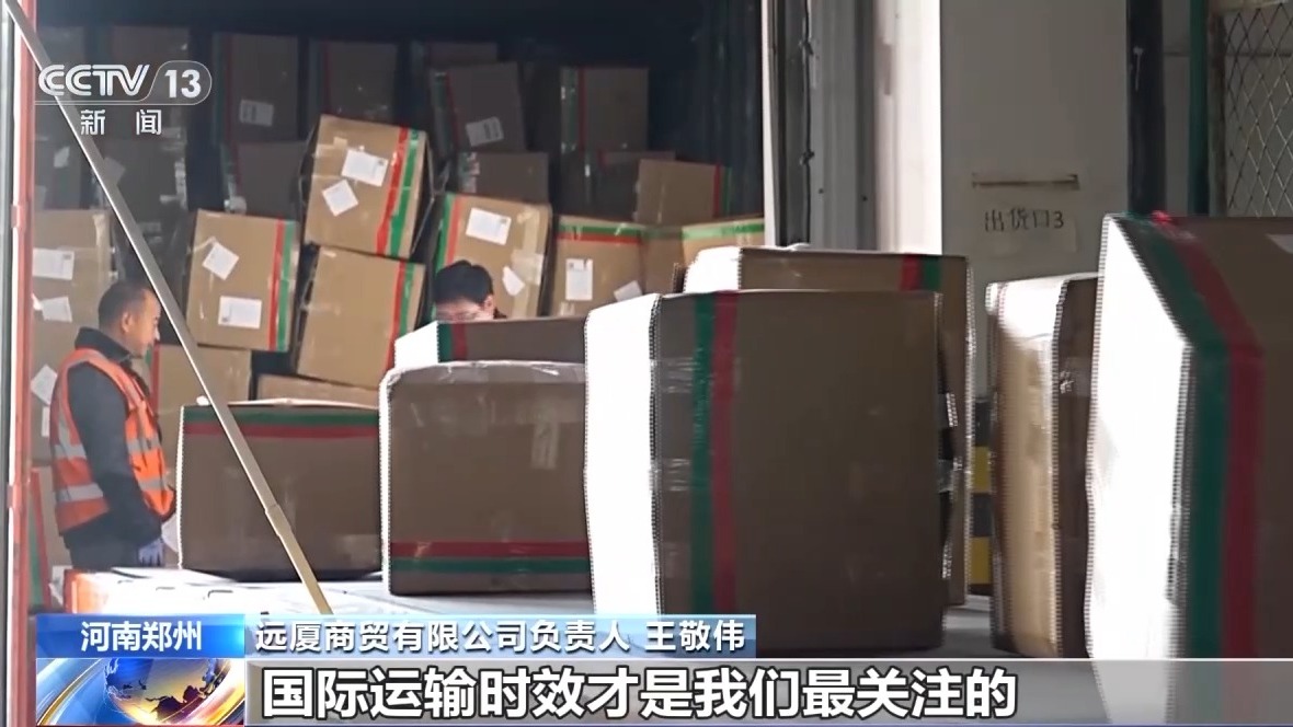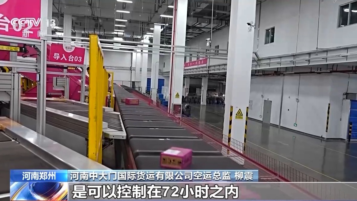 河南中大门国际货运有限公司空运总监 柳震:从国内工厂提货,到整个航班在境外口岸落地,我们整体的时效是能控制在72小时之内,全部符合高效运转的时效要求。