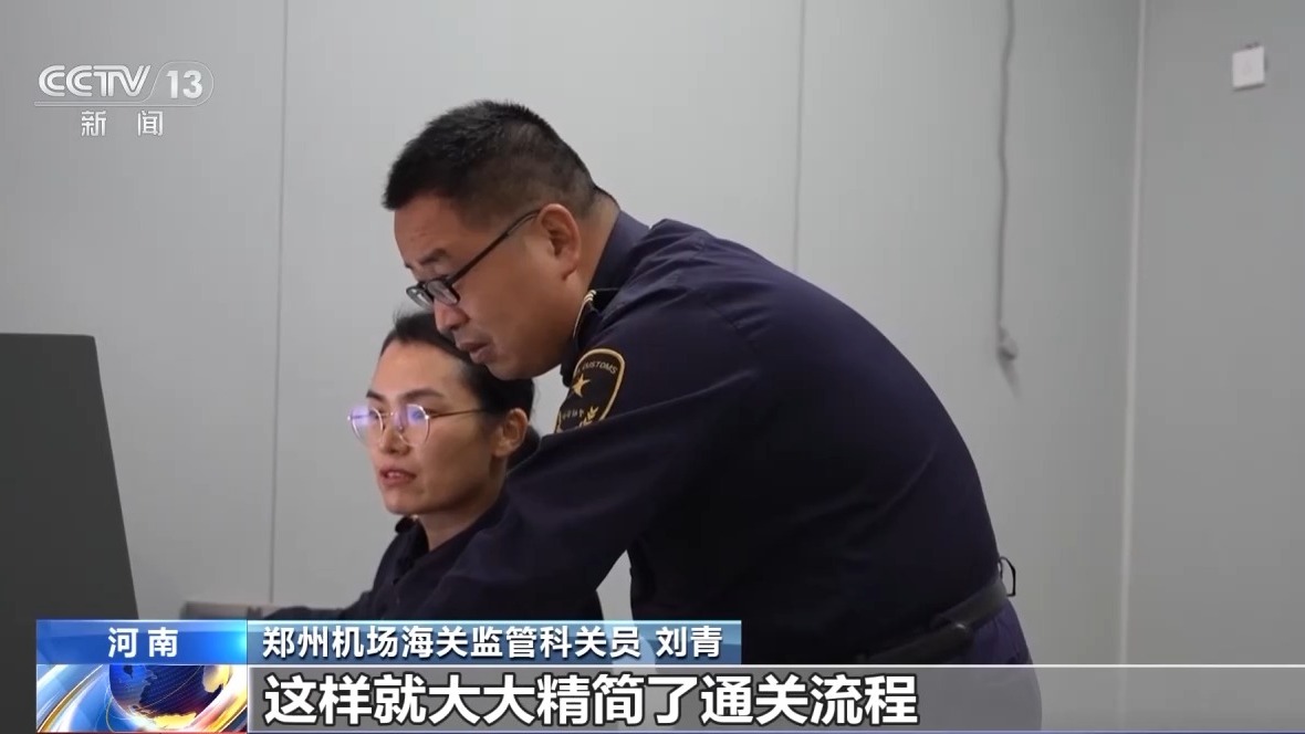 郑州机场海关监管科关员 刘青:我们简化了出口单证申报手续,企业无需再向海关提交收款的电子信息了。另外我们也积极推广出口拼箱货物,先查验后装运的监督管理模式,这样就大大精简了通关流程。